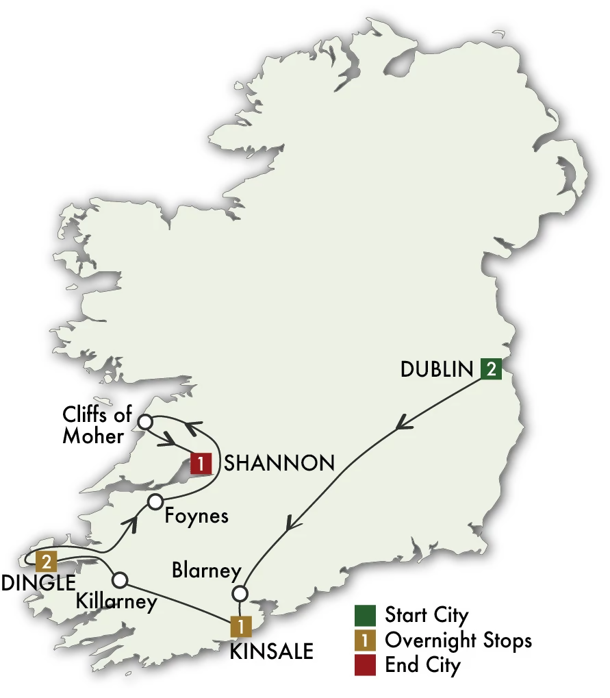 Set out on the Slea Head Loop, one of Ireland's most beautiful drives, through scenic ocean and mountain vistas. Visit the Blasket Centre in Dunquin to learn about the Blasket Islands, visible off the coast. Abandoned in 1954, they were once a lively outpost of traditional culture and language. Return to Dingle and visit Murphy's Ice Cream; taste their distinctive flavors like Irish Orange Marmalade, Brown Bread, and Dingle Gin. Take the rest of the day to wander and dine as you wish in this quaint seaside town.