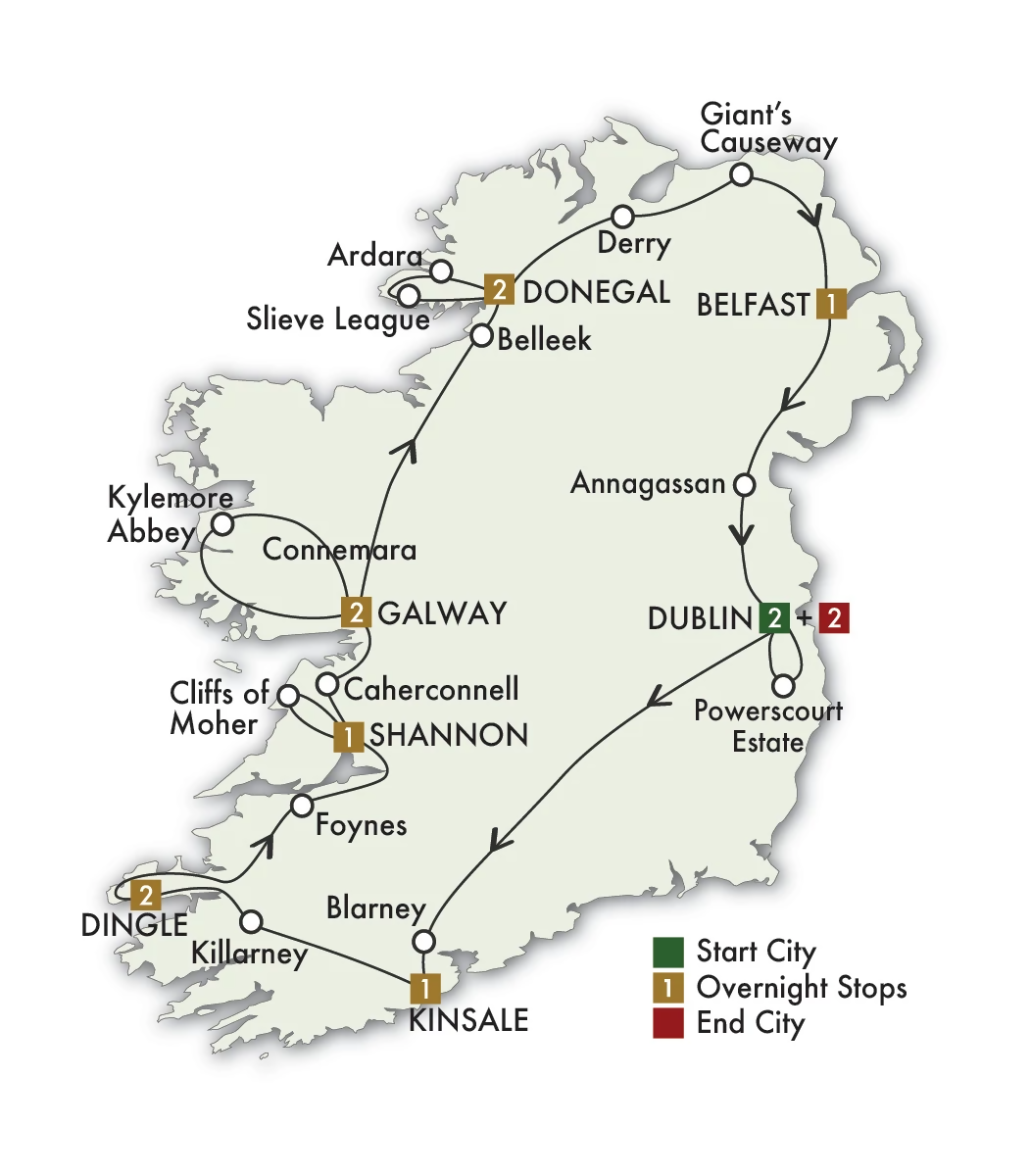 Set out on the Slea Head Loop, one of Ireland’s most beautiful drives, through scenic ocean and mountain vistas. Visit the Blasket Centre in Dunquin to learn about the Blasket Islands, visible off the coast. These islands were a lively outpost of the Irish language before being abandoned in 1954, and their legacy lives on. You’ll learn a few words or “cúpla focal” for yourself! Return to Dingle and visit Murphy’s Ice Cream; taste their distinctive flavors like Irish Orange Marmalade, Brown Bread, and Dingle Gin. Take the rest of the day to wander and dine as you wish in this quaint seaside town.